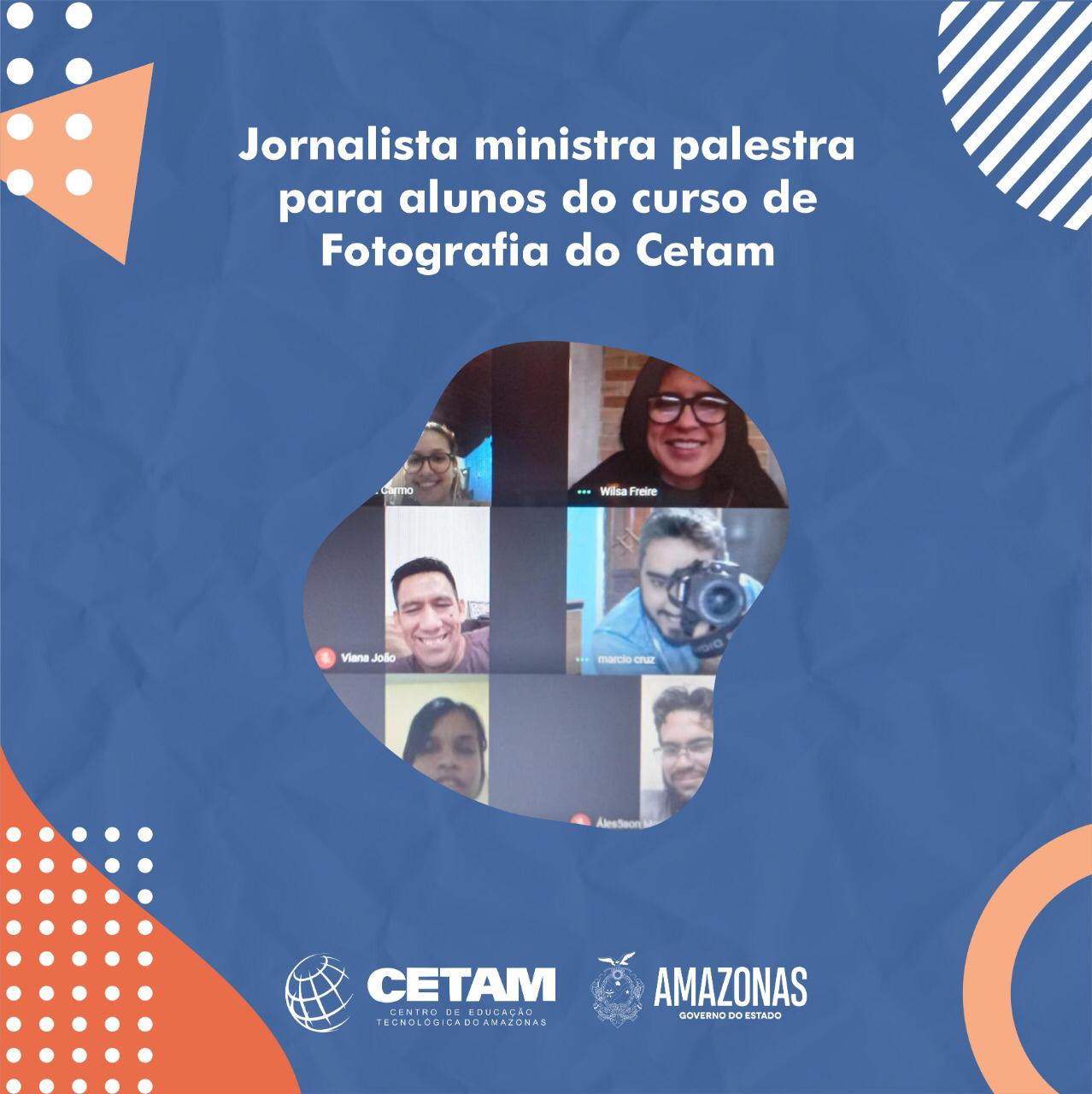 Alunos do curso de Fotografia do Cetam/Centro Estadual de Convivência da Família (CECF) Padre Pedro Vignola receberam a jornalista Wilsa Freire na noite de quinta-feira (22/10). Ela foi convidada para ministrar a palestra “Fotografia com negócio”, por meio da plataforma Google Meet.
