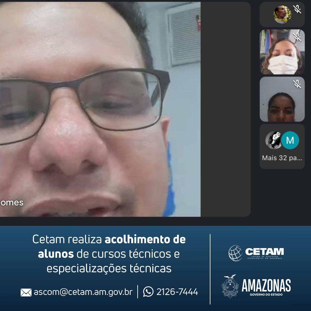 O Centro de Educação Tecnológica do Amazonas (Cetam) fez, hoje (15/03), a acolhida dos alunos de cursos técnicos e especializações técnicas que estão se preparando para iniciar as aulas por meio de ensino remoto.