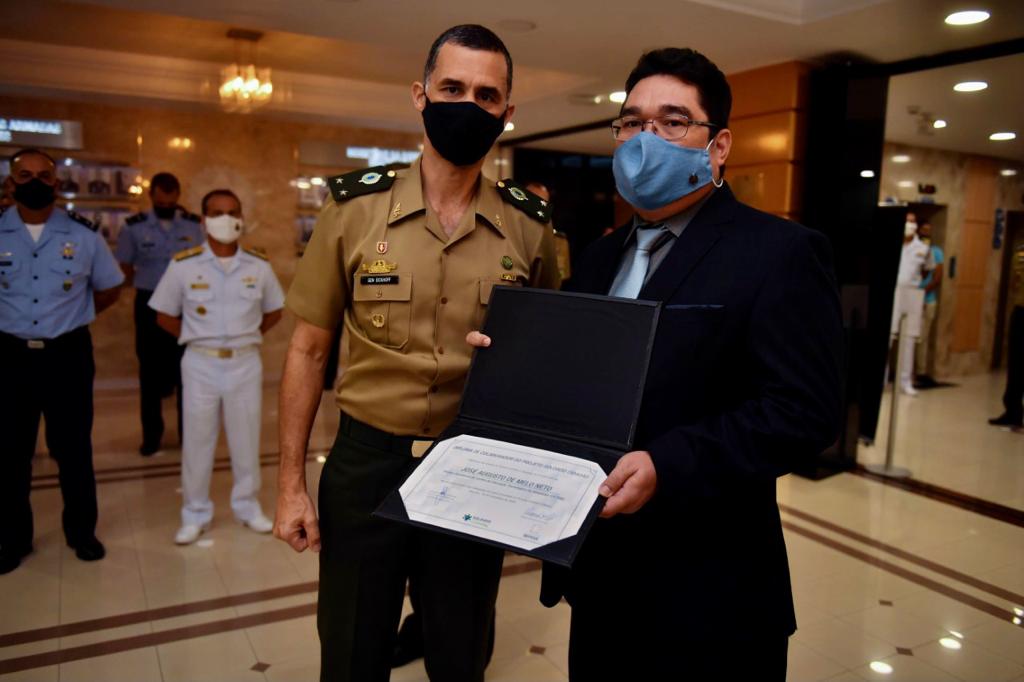 O diretor-presidente do Cetam, Prof. Dr. José Augusto de Melo Neto, foi uma das personalidades agraciadas com o Diploma de Colaborador do Projeto Soldado Cidadão. A solenidade de entrega do 10º Prêmio Melhor Gestão do Projeto Soldado Cidadão aconteceu em Brasília, no Ministério de Estado de Defesa, na tarde de quarta-feira (25/11). O Projeto Soldado Cidadão visa a integração cívico-social dos egressos do serviço militar por meio da qualificação profissional. “No Amazonas, o Cetam é responsável por essa ação de parceria com o Ministério da Defesa e as Forças Armadas”, ressalta o professor José Augusto.