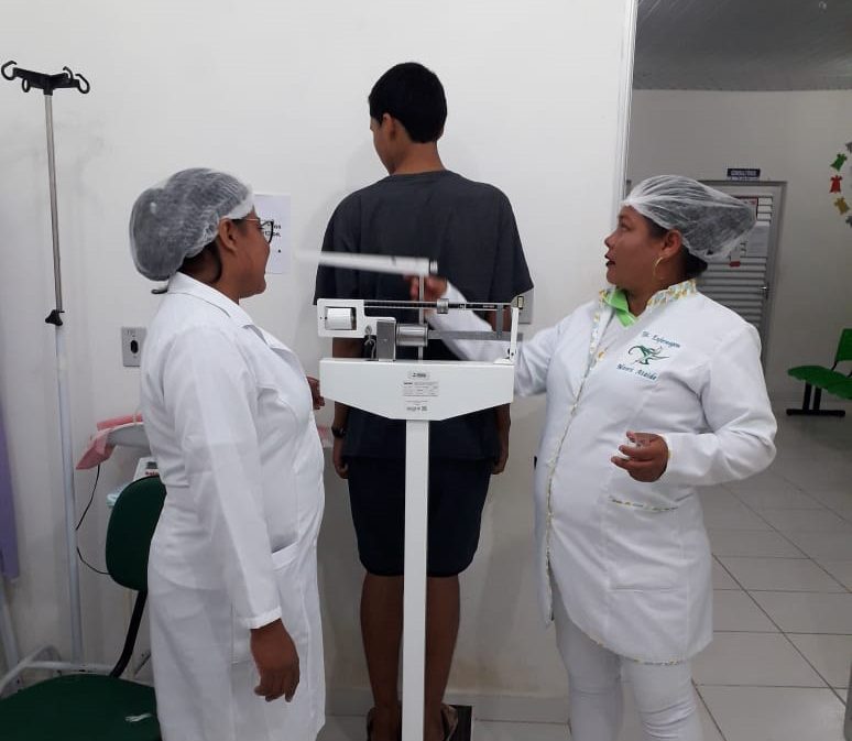 No Cetam/São Paulo de Olivença, alunos do curso Técnico em Enfermagem realizam estágio supervisonado etapa III,  na UBS de Santa Terezinha. A turma, formada por 24 alunos, 8 em cada turno, é acompanhada pela instrutora e preceptora do estágio, enfermeira Aurinete Nunes Jesus. Nas imagens, estão sendo feitas aferições de pressão arterial, higienização de ferimentos, além de medição de peso e altura de pacientes.